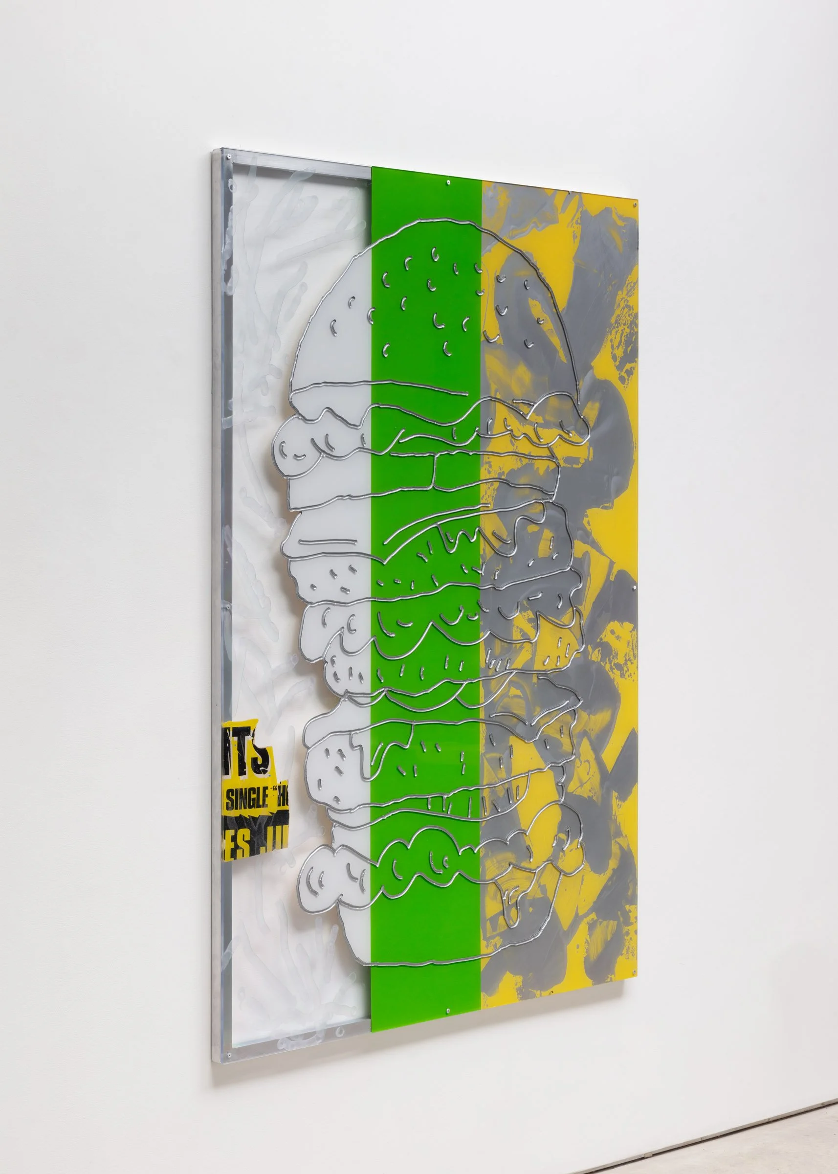 Joe Fleming, Rolly, 24” x 30”, enamel on polycarbonate with aluminum, semi-transparent, 2024